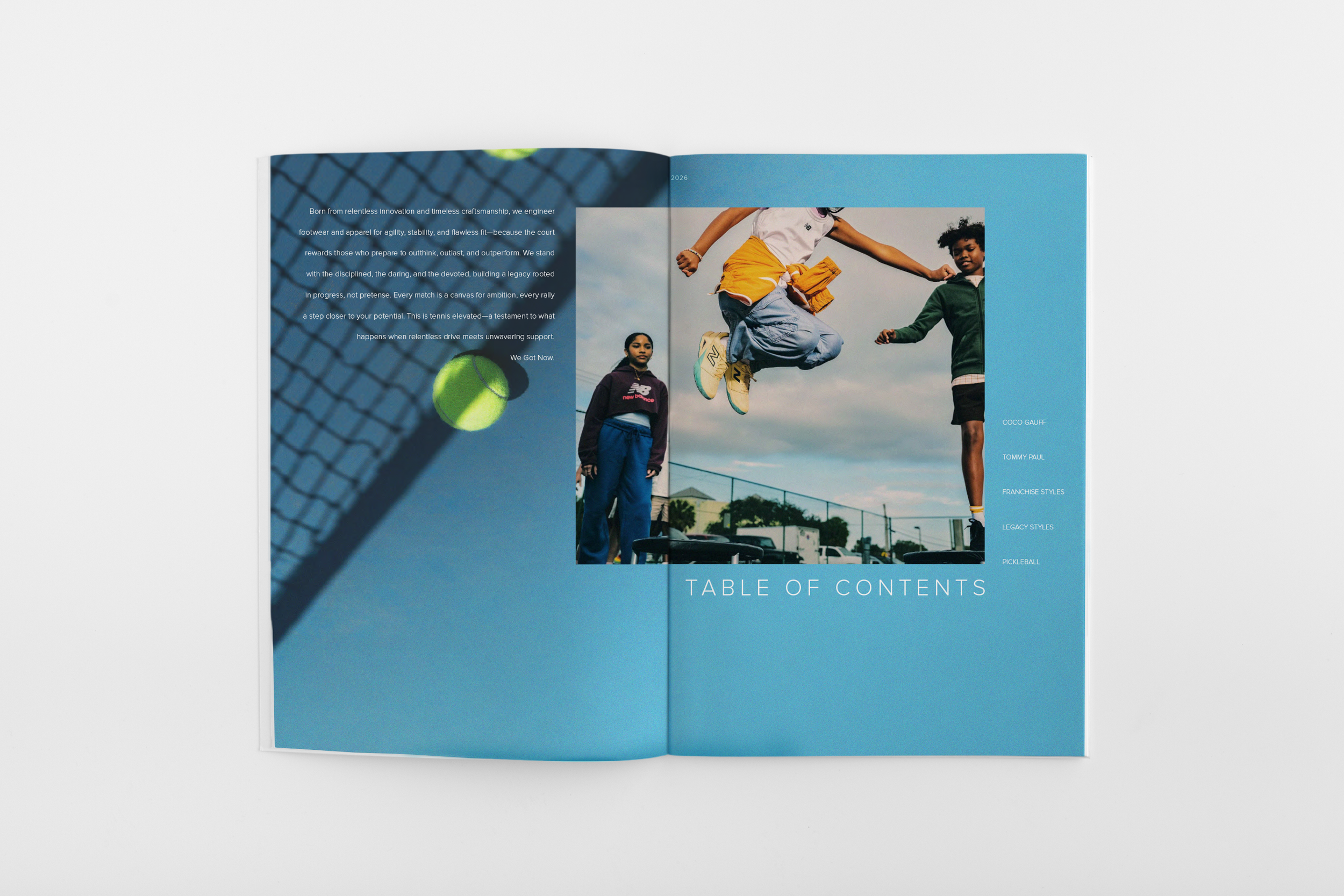 a tennis-specific catalog for a partnership with zefyr, mosaic brand partners, and new balance.